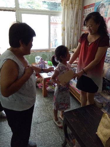 始终关心、关注贫困妇女和贫困儿童,并把这种关心落实在行动上,组织妇女志愿人士和双学双比基地负责人定期对我镇的孤儿杨梦圆进行访视和慰问。